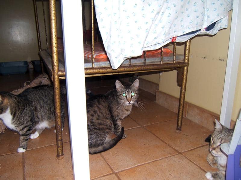 W dniu 8 maja przywieźliśmy z Łodzi do nas następne 3 koty, które po śmierci opiekuna (bliskiego nam znajomego) zostały bez opieki. Rodzina bezlitośnie ich się pozbyła. Są to koty stare, 14, 10 i 8 lat. U nas mają teraz dom, ale stres jest ogromny. Bardzo wystraszone siedzą pod meblami i nie jedzą. Jest z nimi wielki problem.