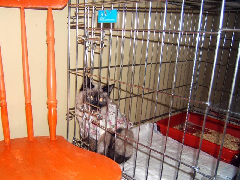 Następne dwie kotki, oczywiście bezdomne. Jedna w zaawansowanej ciąży, została wysterylizowana, druga wychudzona strasznie, nie mogła jeść w powodu chorych dziąseł (plazmocytarne zapalenie dziąseł). Pięć kotów kotów uratowaych żyje i ma się bardzo dobrze dzięki wysiłkowi lekarzy.