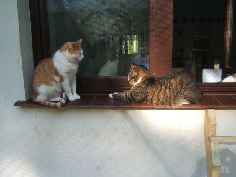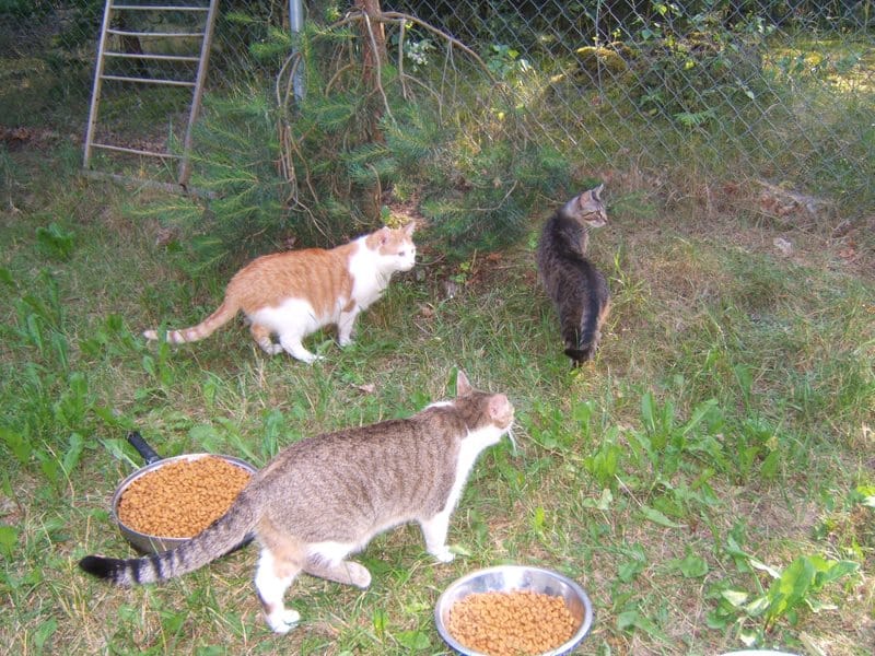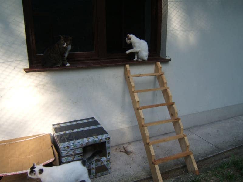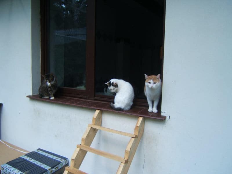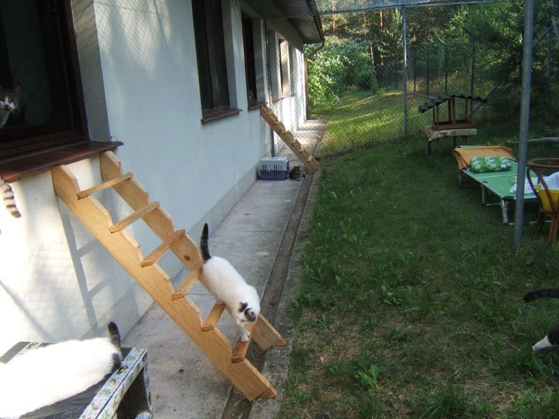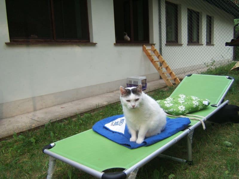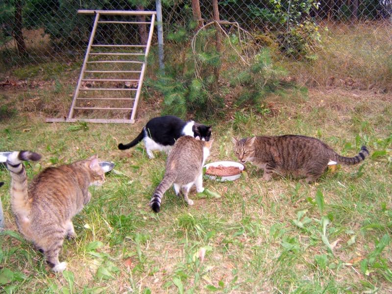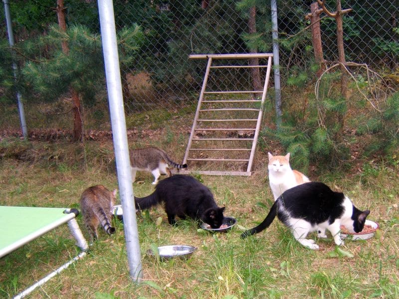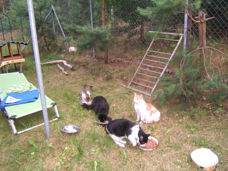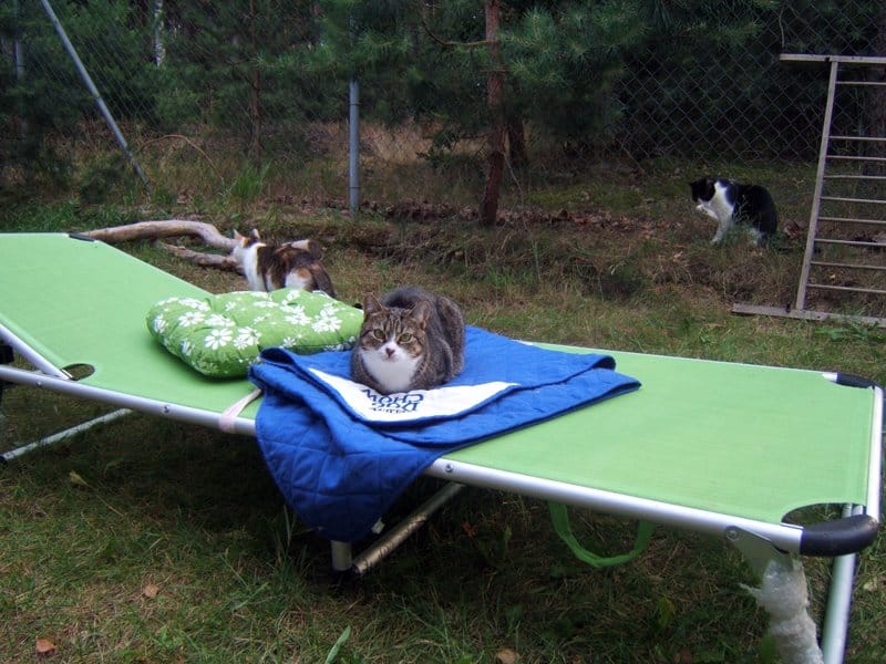 Jest piękne lato, koty szaleją w wolierze, widzę jakie są bardzo szczęśliwe. Niektóre nie chcą wychodzić z domu bo jest chłodniej, szczególnie te starsze. Na siłę ich nie wyrzucam. One bardzo kochają swoje miejsca w domu.