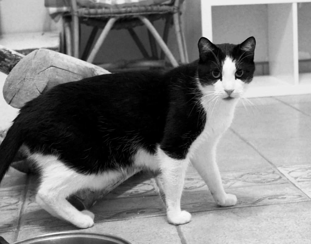 W roku 2014 przyszedł ze wsi, bardzo głodny, chudy, zarobaczony. Po roku u nas doszedł do siebie i żył szczęśliwy.